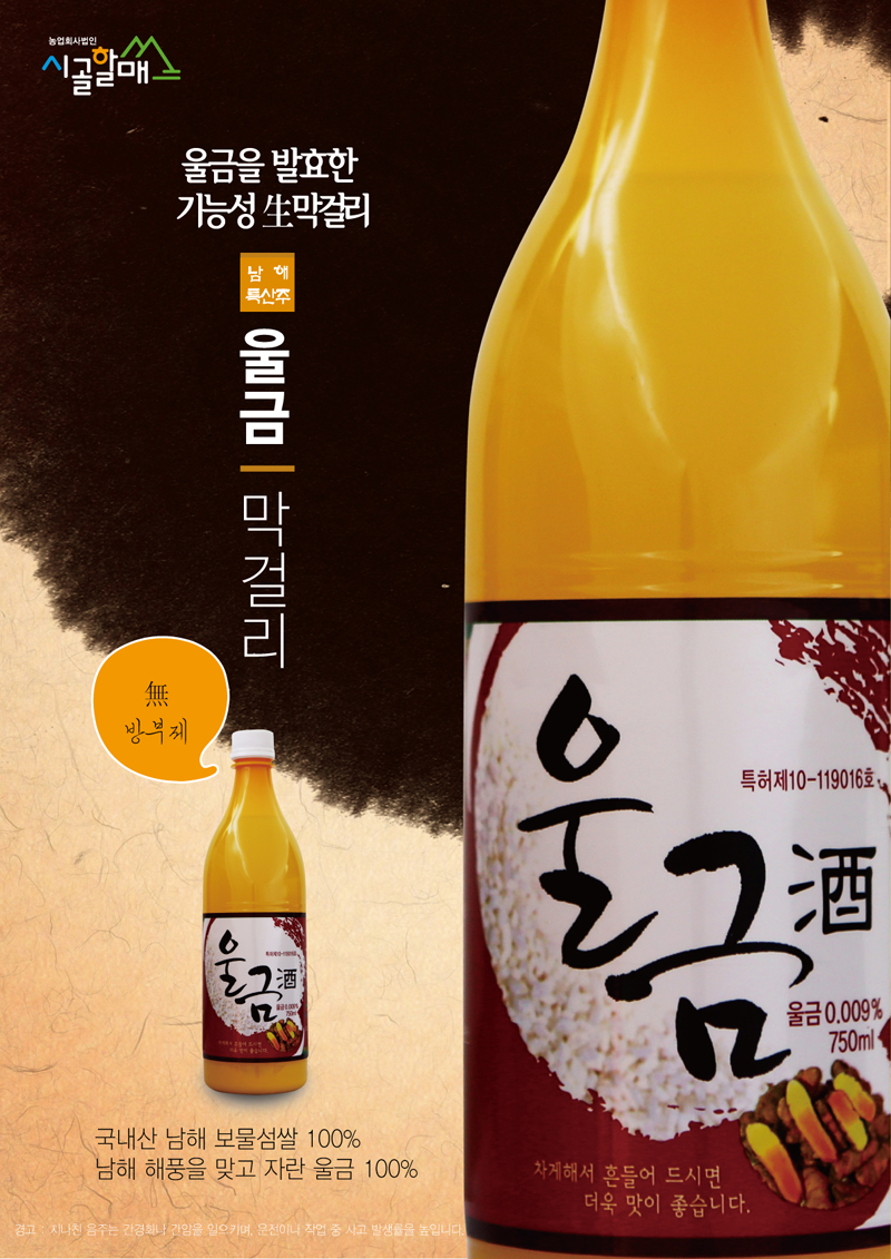시골할매 울금 막걸리는 남해 국내산 쌀과 항암효과에 뛰어난